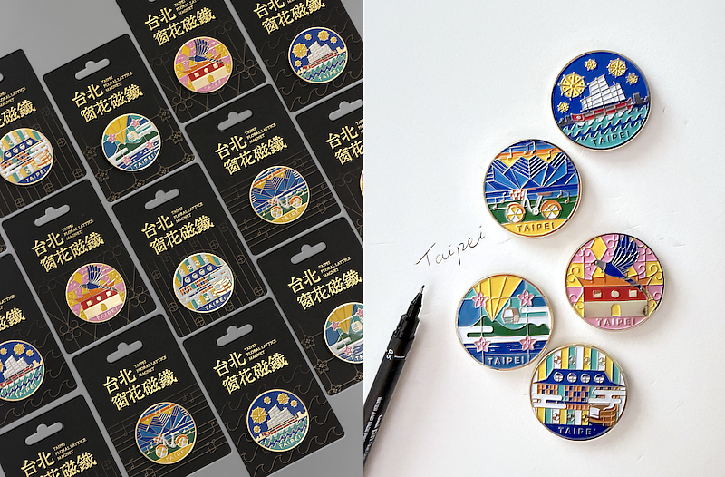 臺北城市紀念品「台北窗花磁鐵」全系列共5款,以臺北街巷常見的窗花圖形並融入城市地標與文化風景。